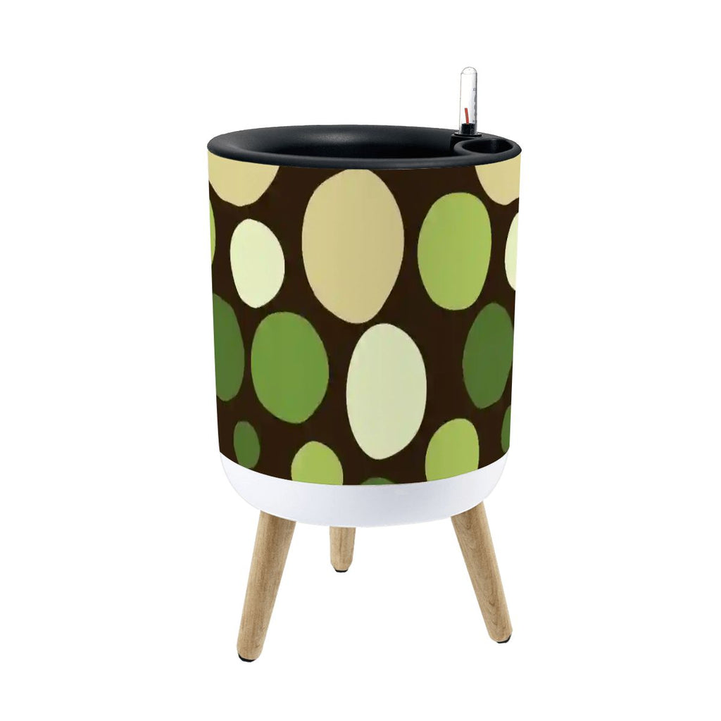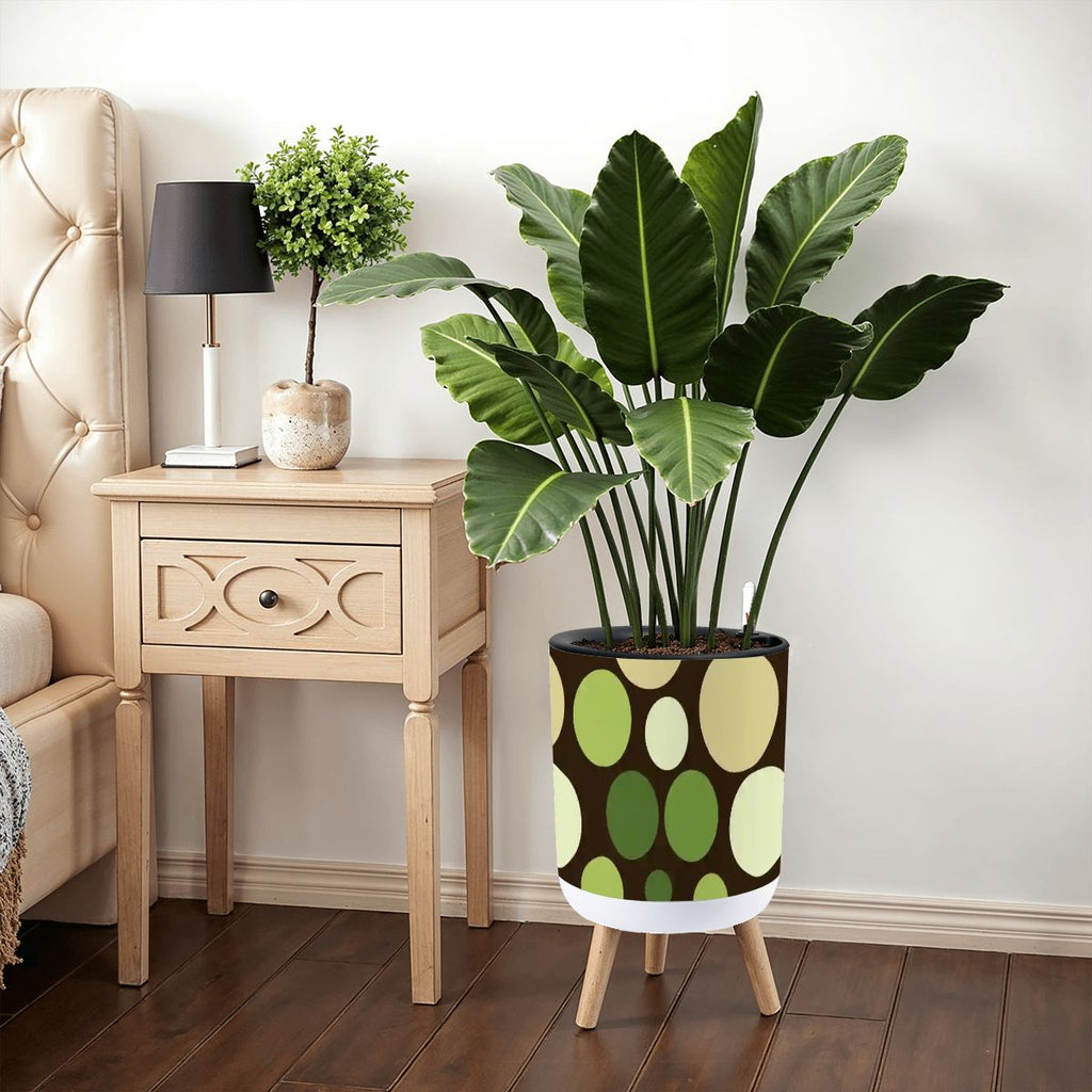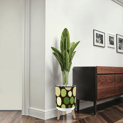 60s Polka Dots Plant Pot with Wooden Legs: Nordic Retro Midcentury