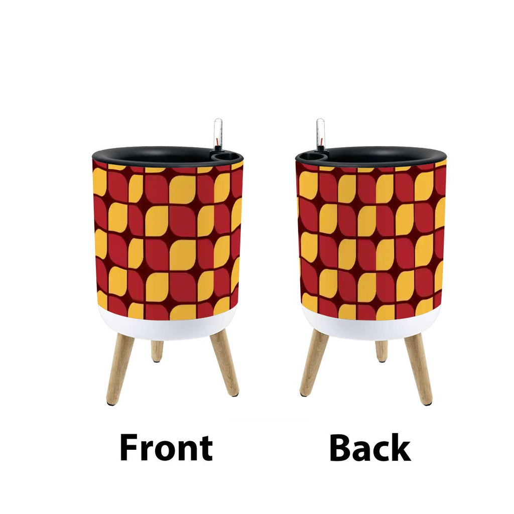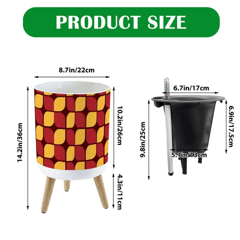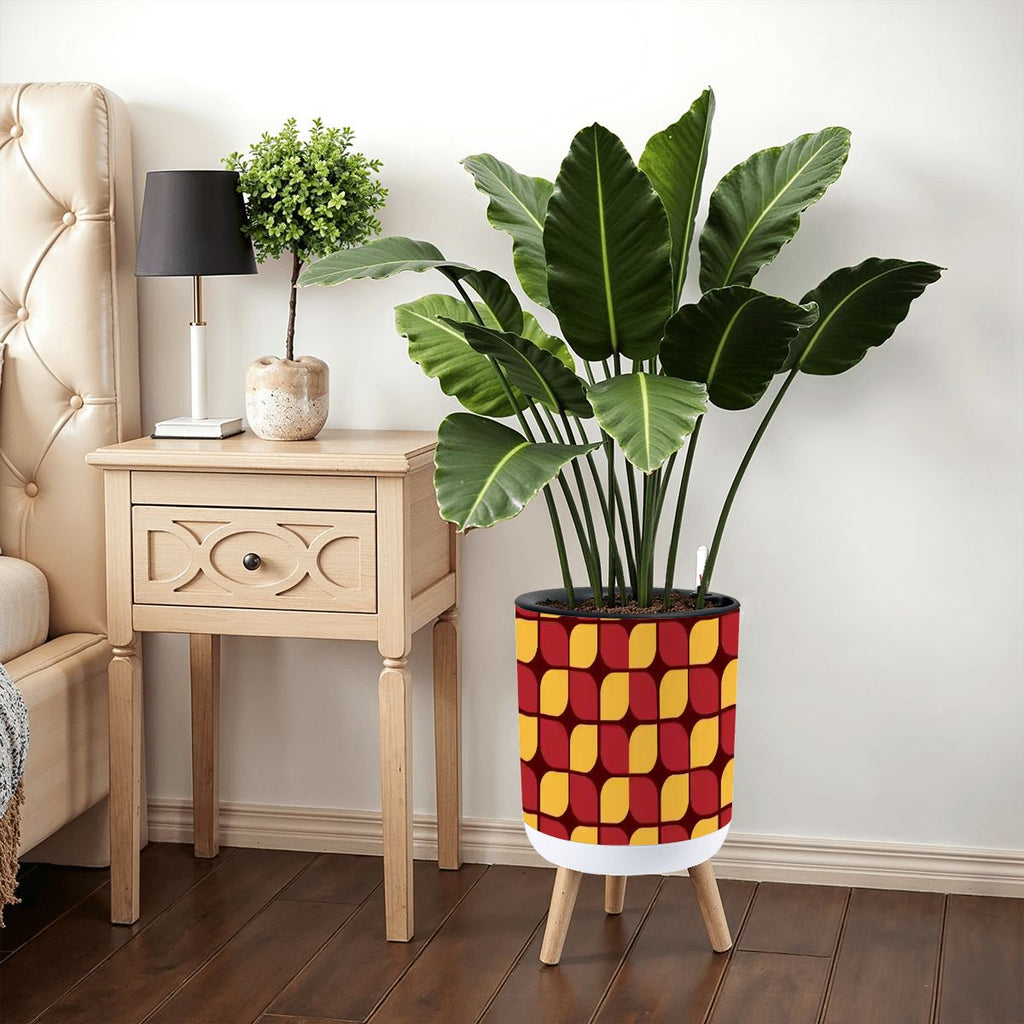 70s Scandi Style Plant Pot, Wooden Legs, Geometric Pattern