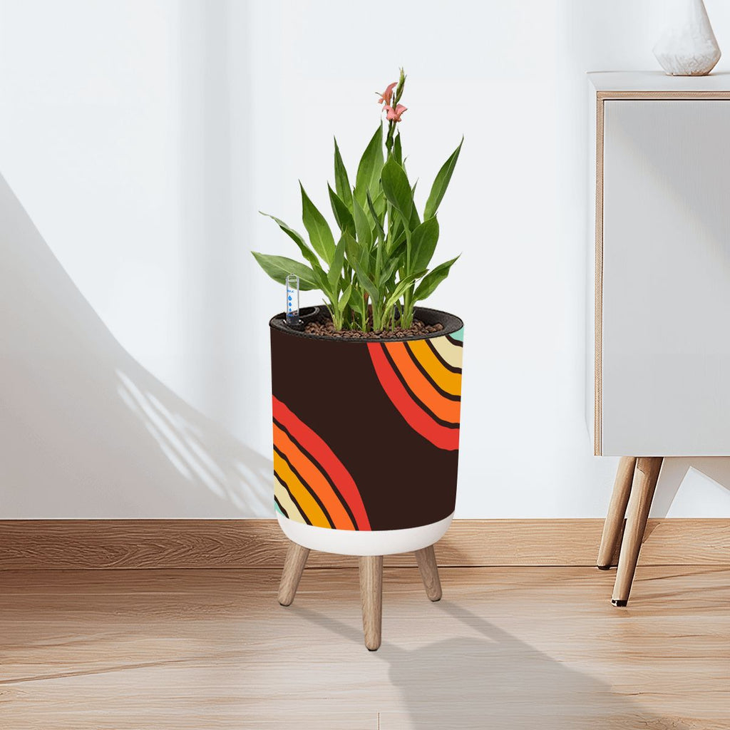 Black Orange Yellow, 70s Scandi Style Plant Pot with Wooden Legs