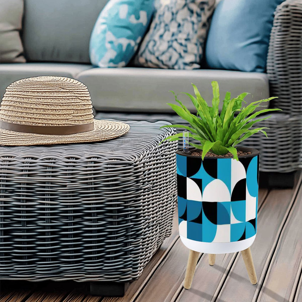Geometric Pattern 60s Retro Nordic Style Plant Pot with Wooden Legs