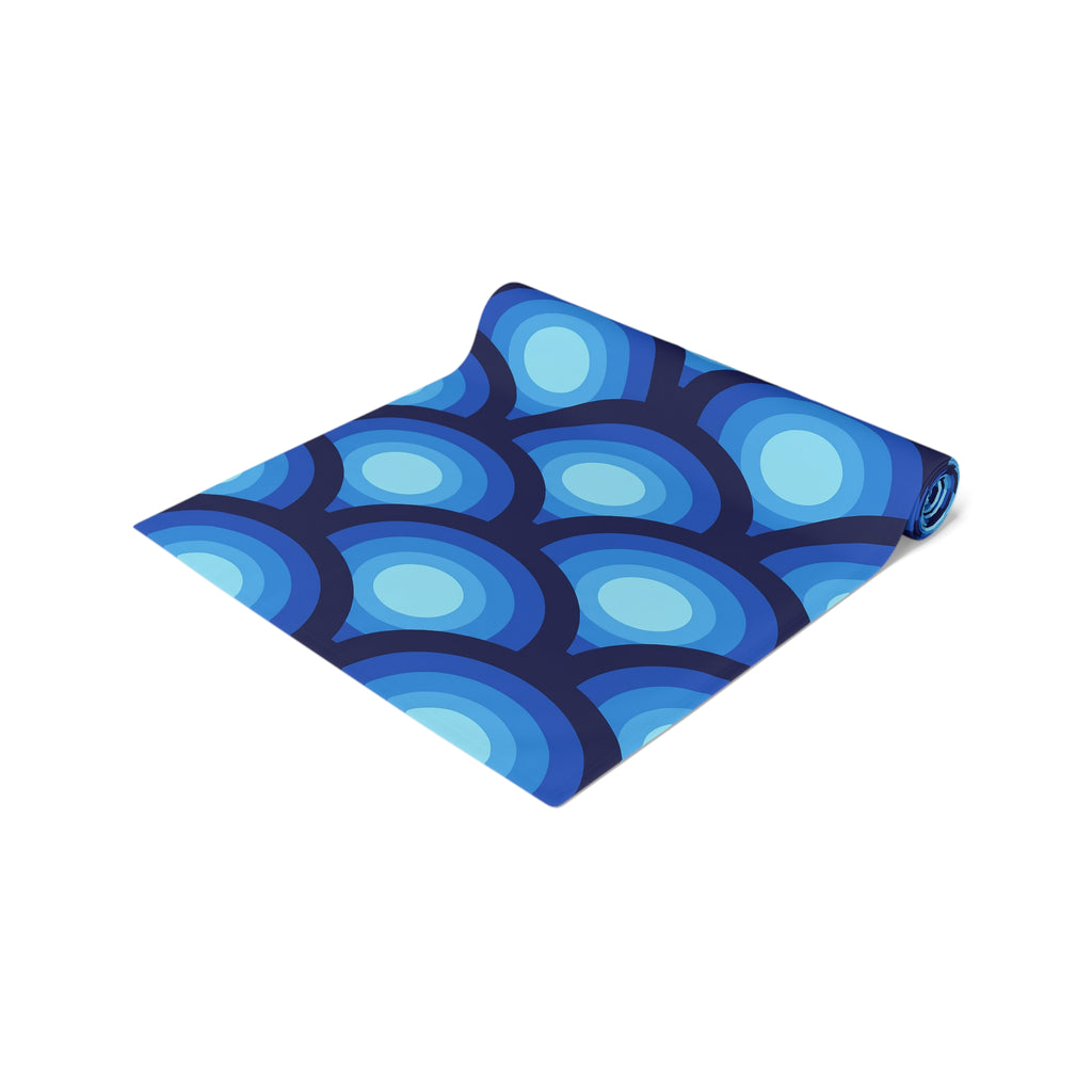 Blue Peacock Eye Retro 70s Table Runner in 2 Sizes - Midcentury Decor