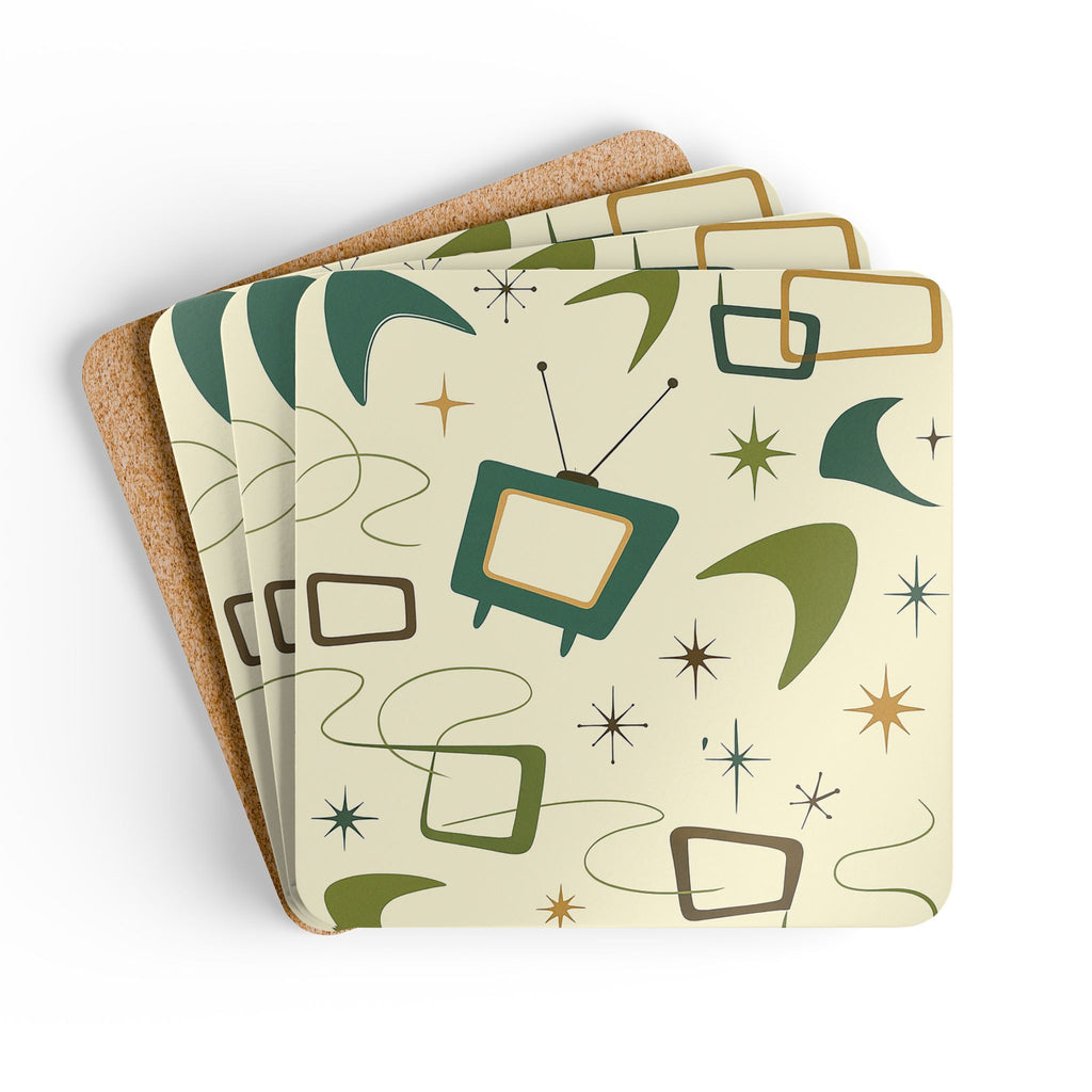 Midcentury Modern Table Coasters – Retro Cork Drink Coasters