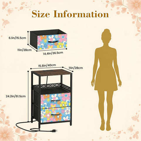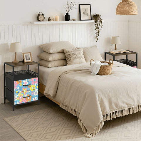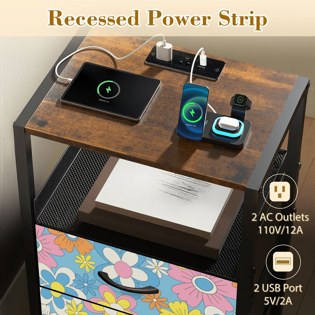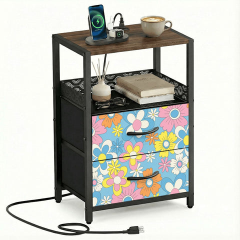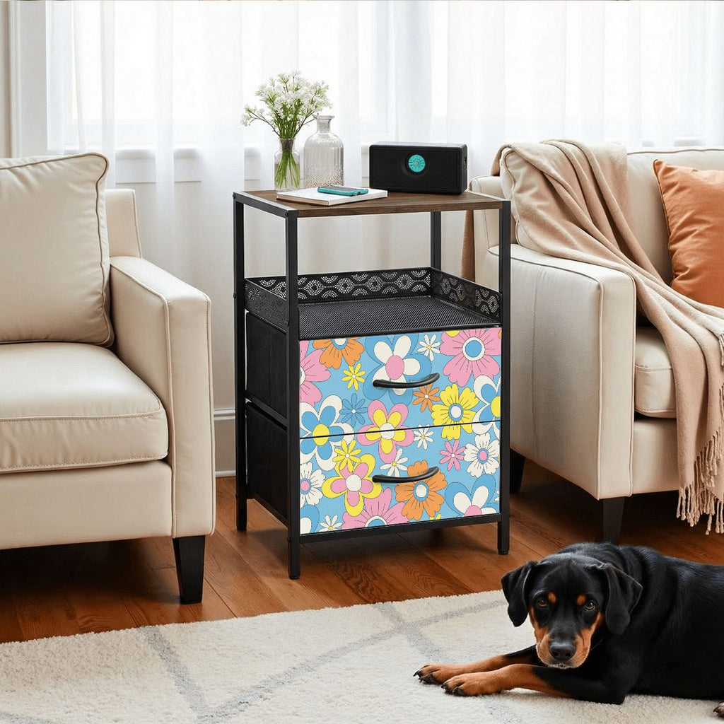 Retro 70s Floral Bedside Cabinet with Integrated Power Access