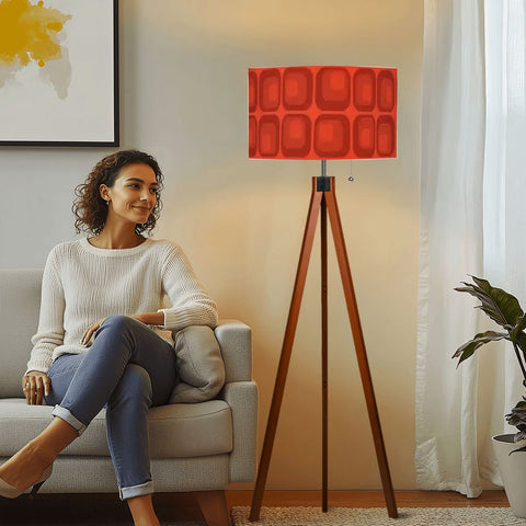 Retro Tripod Floor Lamp, Mid Century 1970s Red Geometric