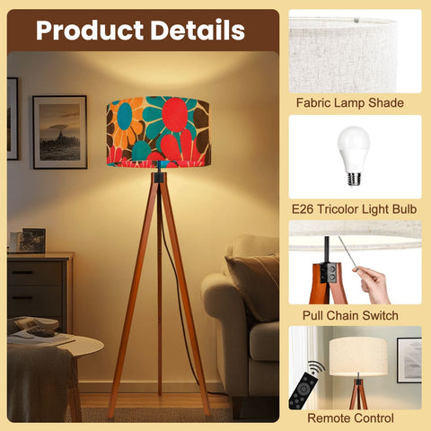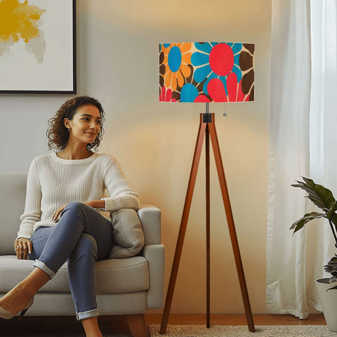 Scandi Retro Tripod Floor Lamp, 70s Funky Flowers