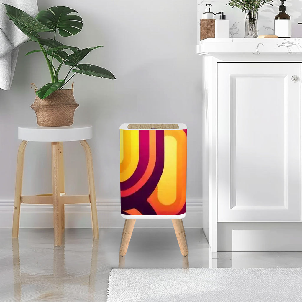Retro 70s Nordic Lidded Trash Can: Orange Midcentury Modern Style Garbage Bin