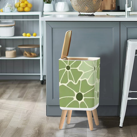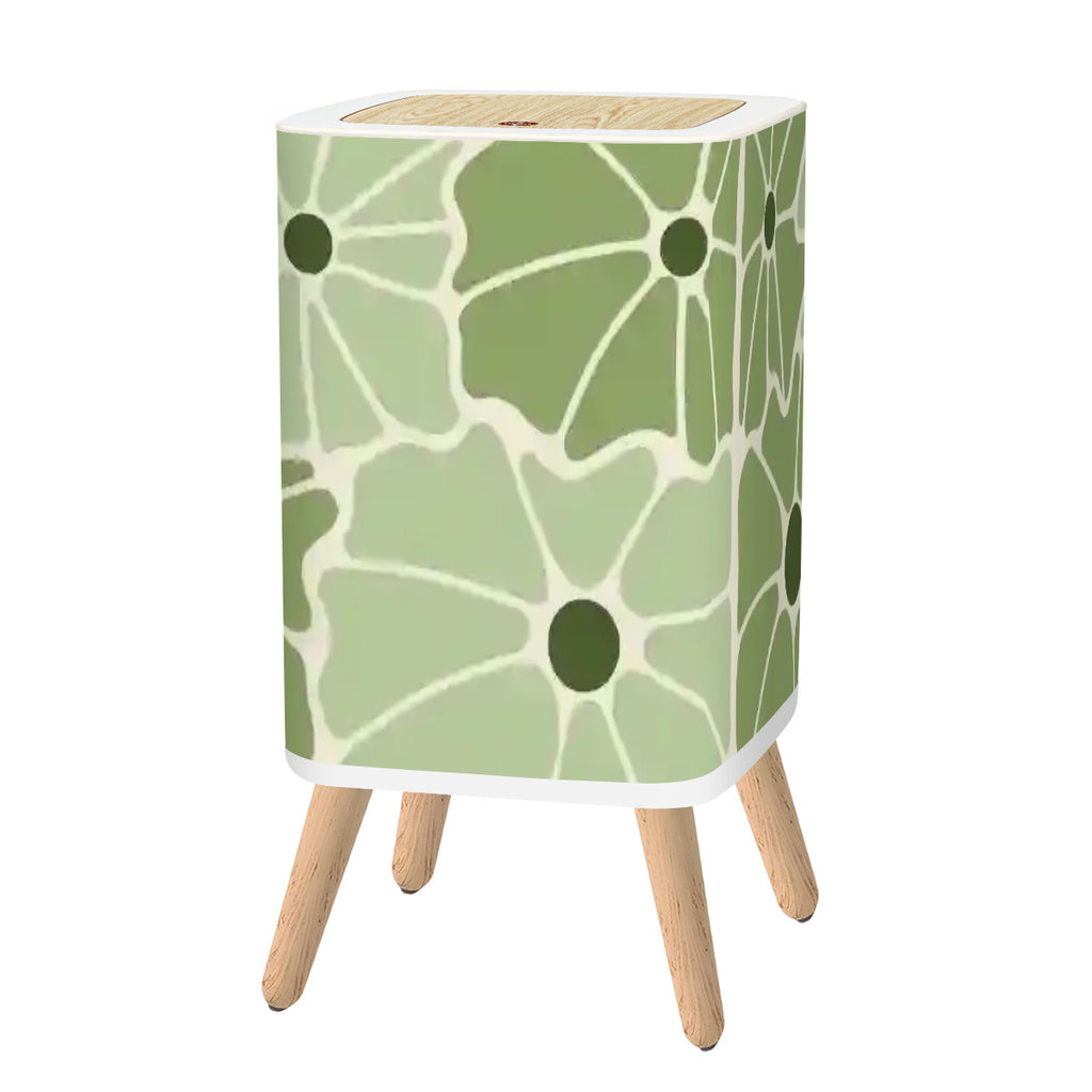 Retro Nordic Trash Can with Lid: Bold Floral Mid-Century Modern Style