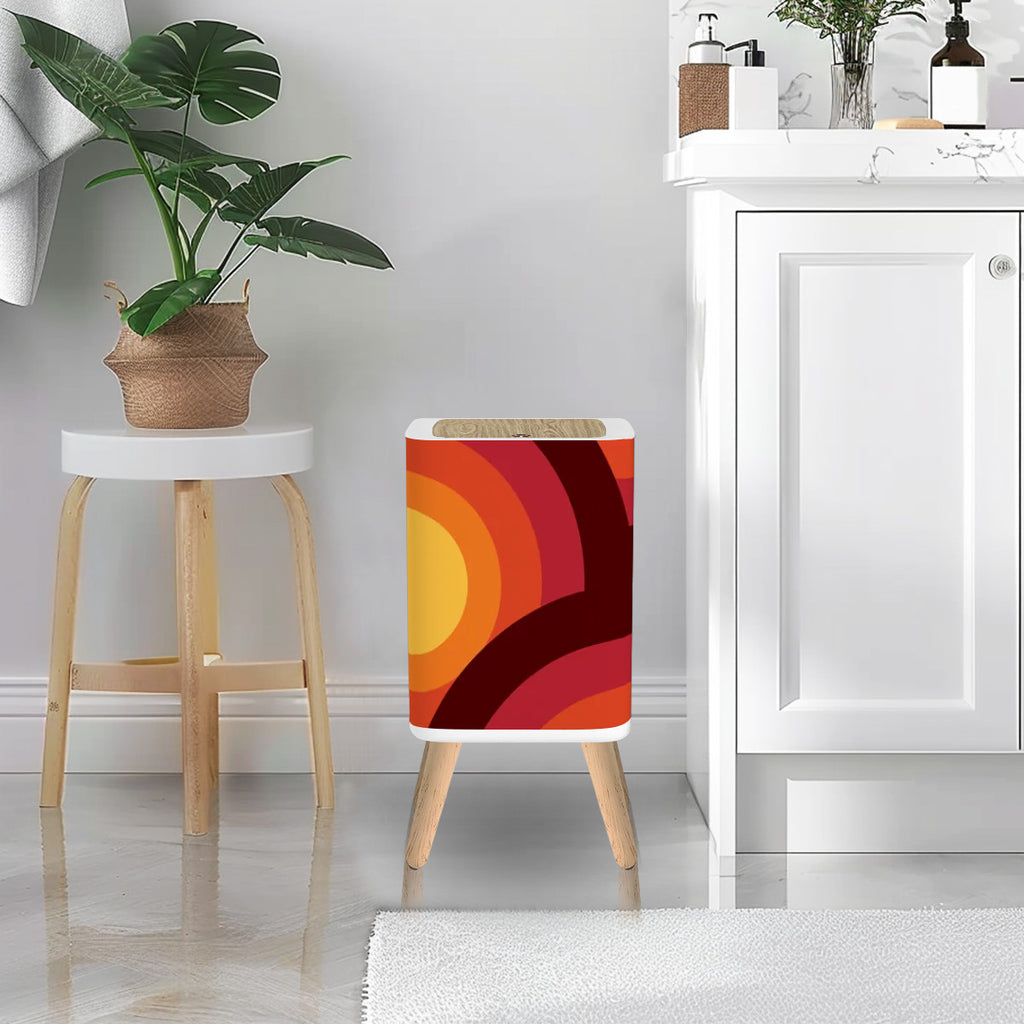 Vibrant 70s Retro Trash Can with Lid: Nordic Midcentury Modern Wastebasket