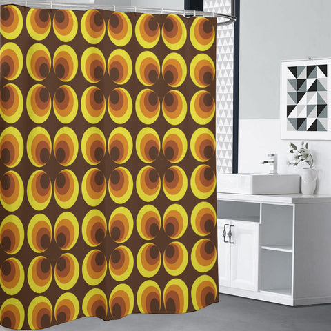Brown Yellow Retro Shower Curtain – 70s Midcentury Modern Home Decor