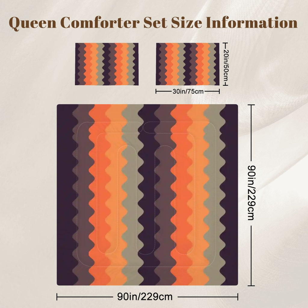 Groovy 70s retro style in vibrant orange, beige, and brown - 3pc Reversible Luxury Microfiber Queen Size Bedding.