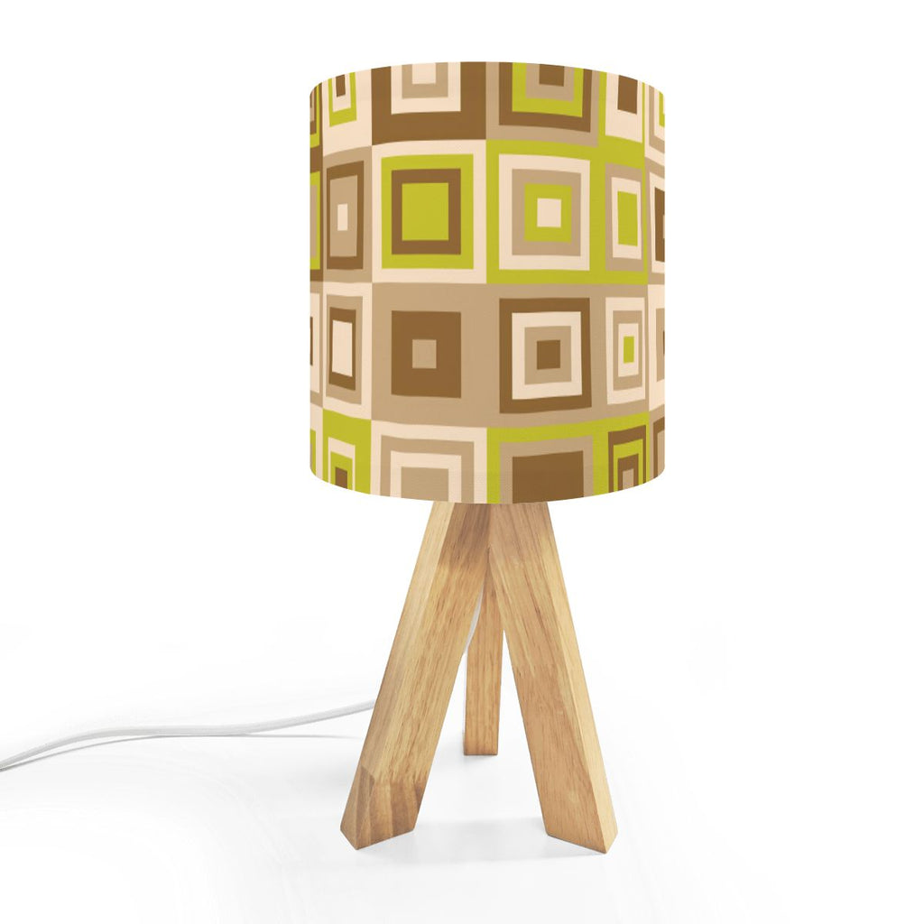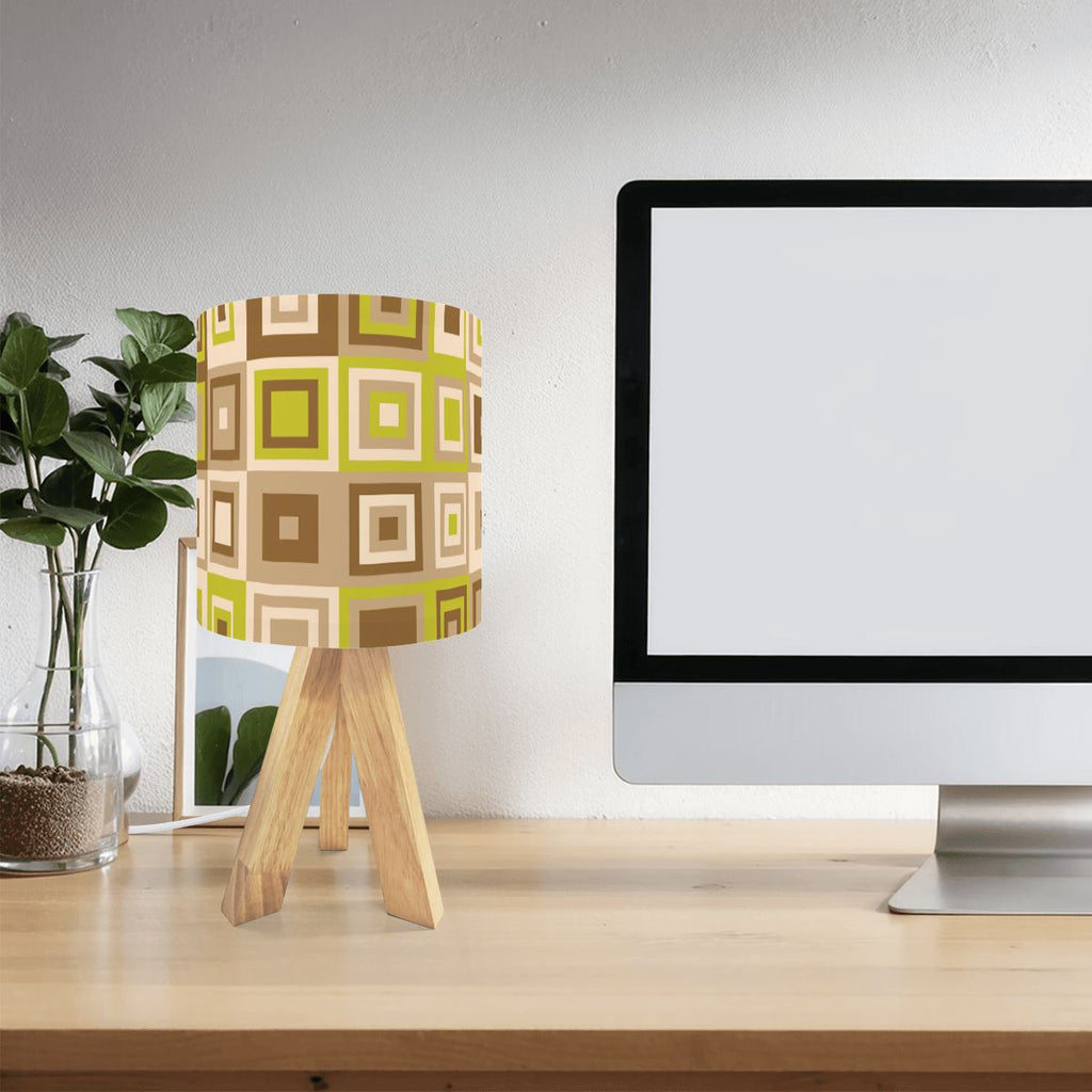 1960s Midcentury Retro Tripod Table Lamp: Green Beige Brown Linen Shade