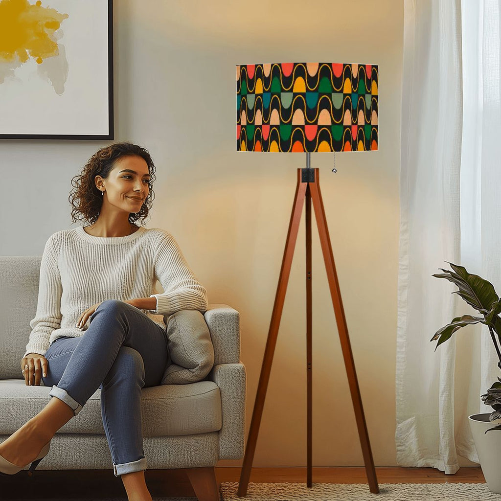 Bring light and style into your home with this tripod floor lamp. Its retro Scandinavian design combines a fabric lampshade with a sturdy wooden tripod base, creating a warm, unique and timeless accent for any interior.