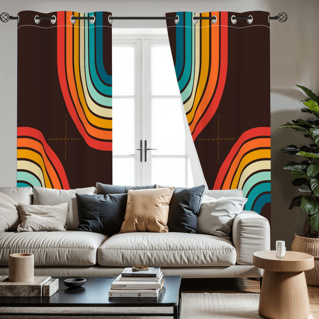 Midcentury Modern Rainbow Blackout Curtains: 70s Retro Multi Sizes Panels