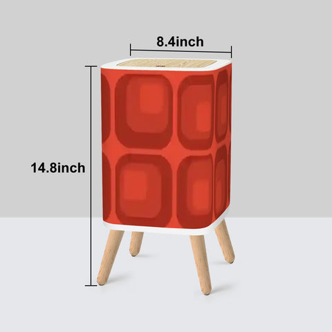 Retro 1970s Style Square Trash Can with Lid Mid Century Modern, Red Geometric