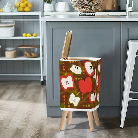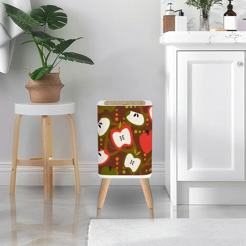 Square Small Trash Can with Lid, Apples Mid Century Pattern 1950s