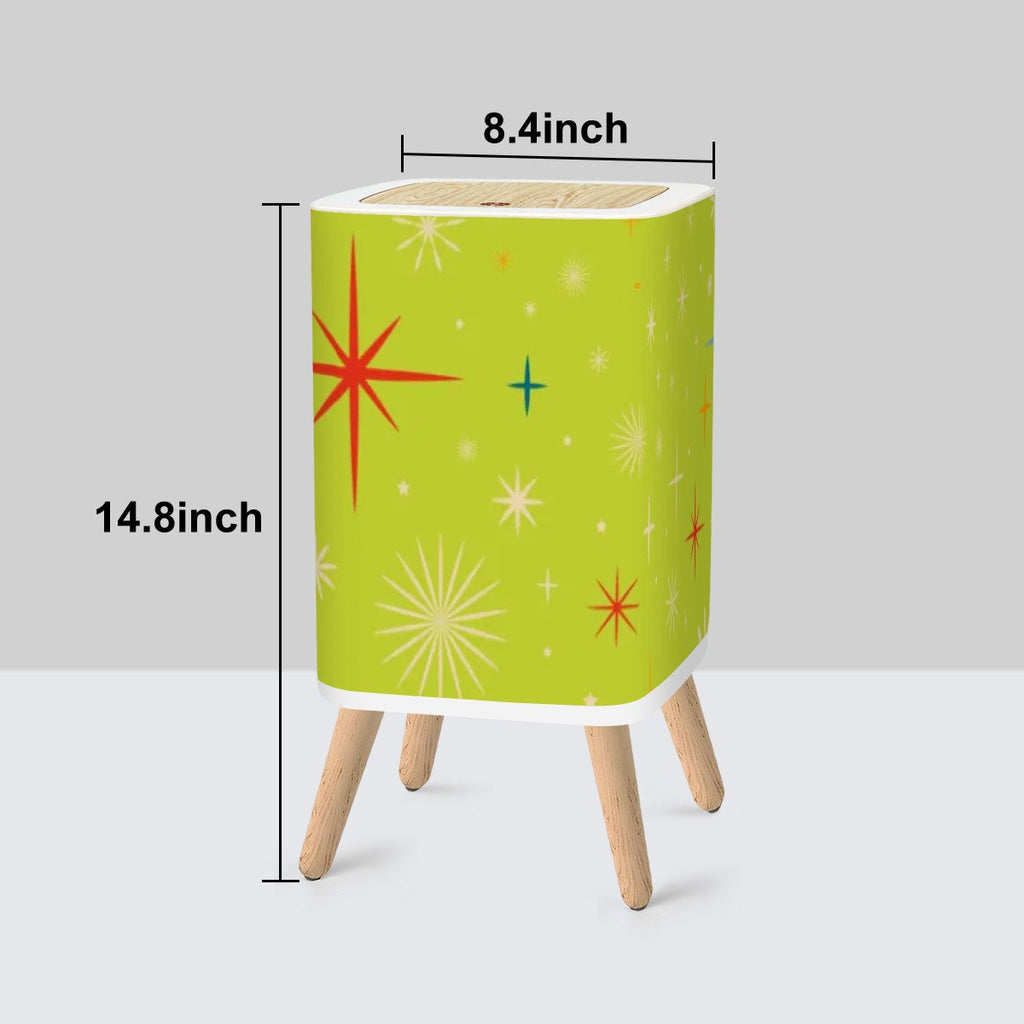 Square Trash Can with Lid, Christmas Stars Celestial Chartreuse Green