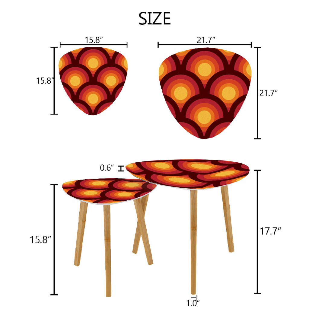 Triangle Peacock Eyes 70s Retro Tripod Nesting Table Set - Orange Red