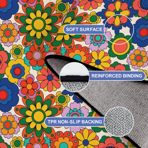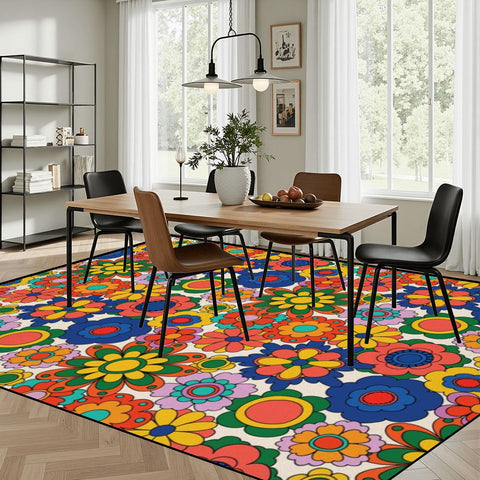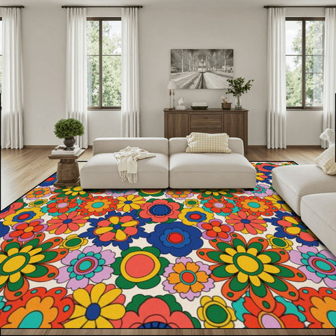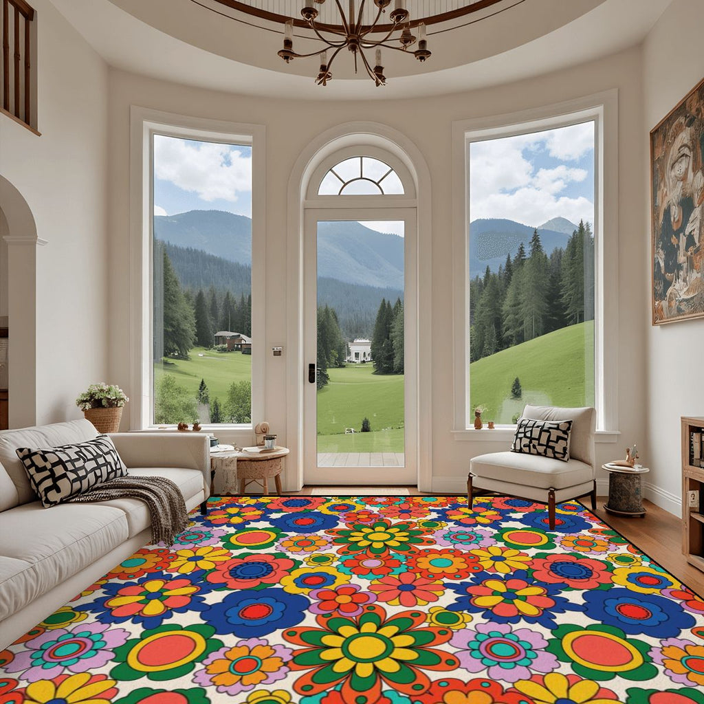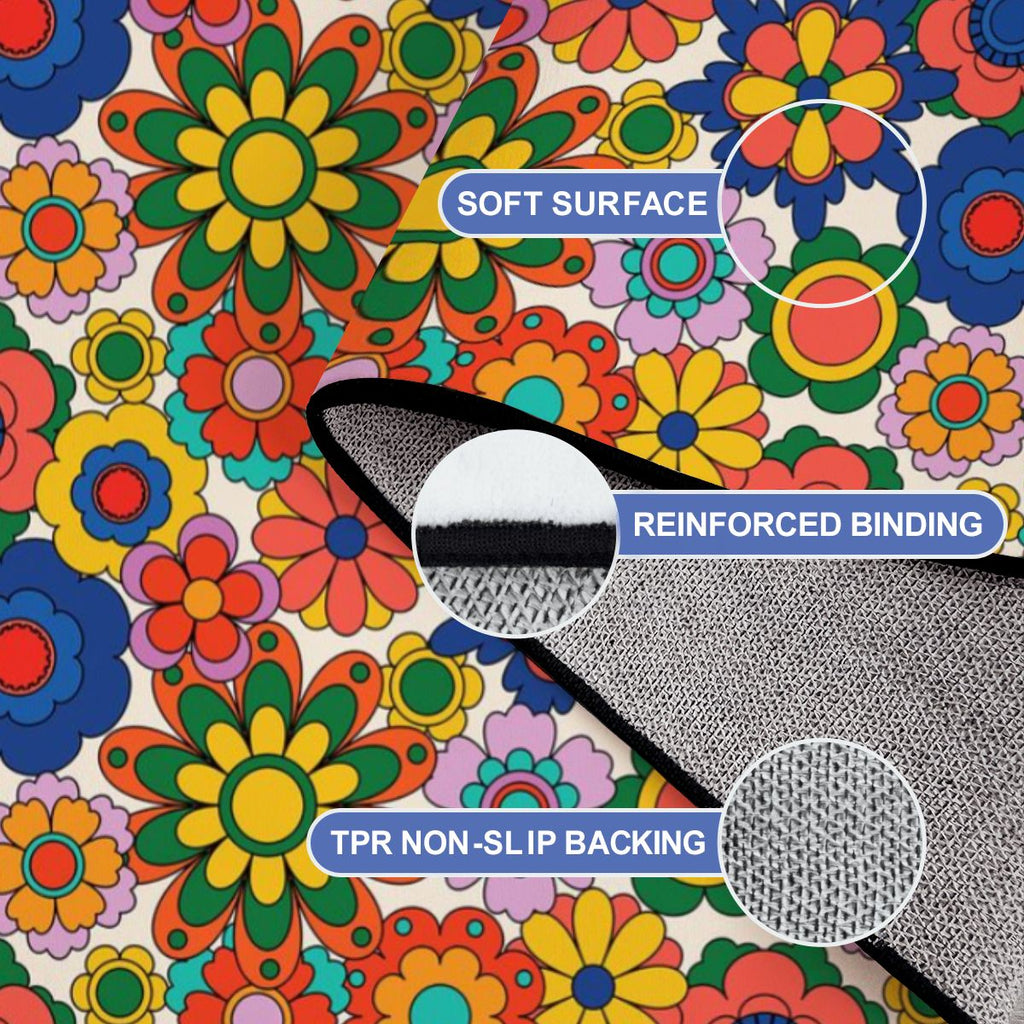 70s Flowr Power Retro Midcentury Rug – Floral Soft Non-Slip Area Carpet