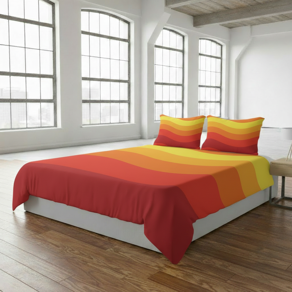 70s Sunrise Retro Midcentury Quilt Cover Set – 3 pcs Bedding in 4 Sizes
