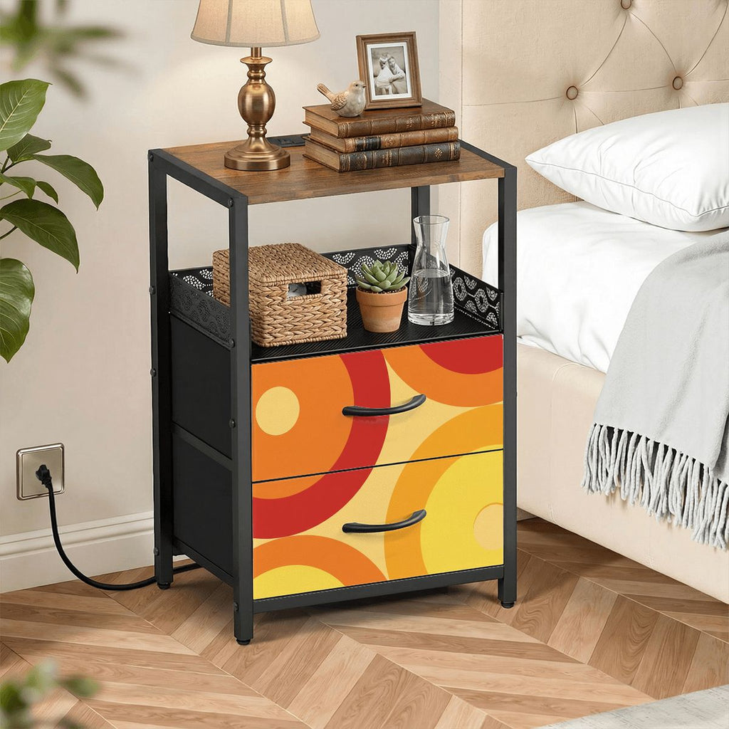 70s Retro Bedside Table Cabinet with Integrated Power Access