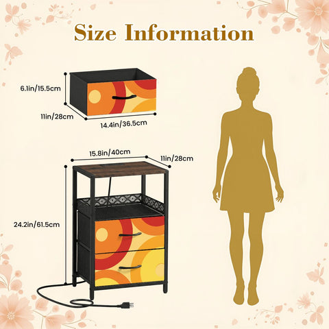 A smart bedside table that blends retro midcentury style with modern convenience. This compact nightstand features two spacious drawers and an integrated power strip built into the top, making it easy to charge phones, lamps, or laptops right where you need them.