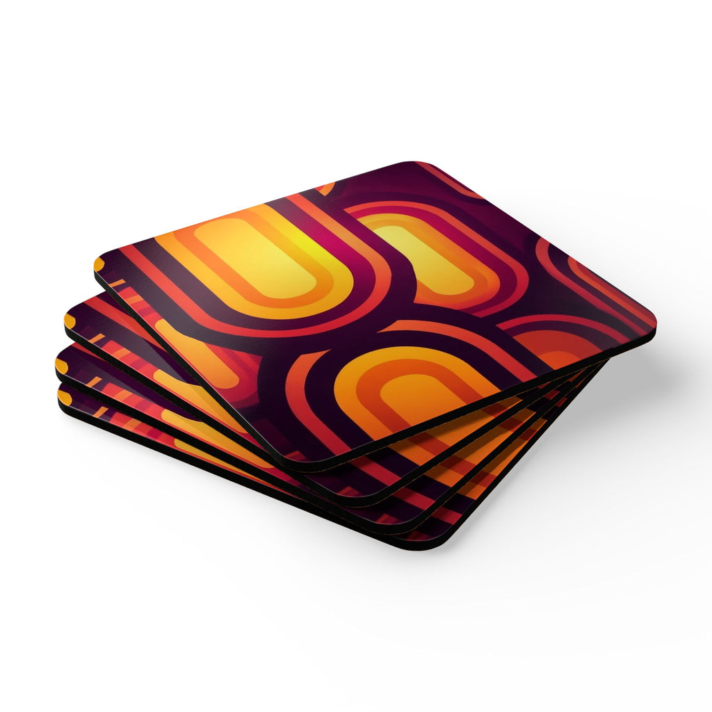Retro 70s Midcentury Corkwood Coaster Set, Eco Cork Drinkware Gift