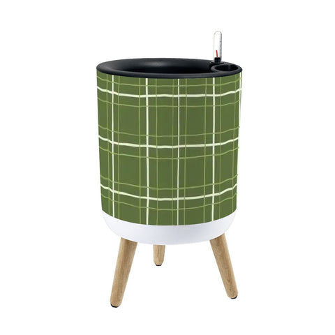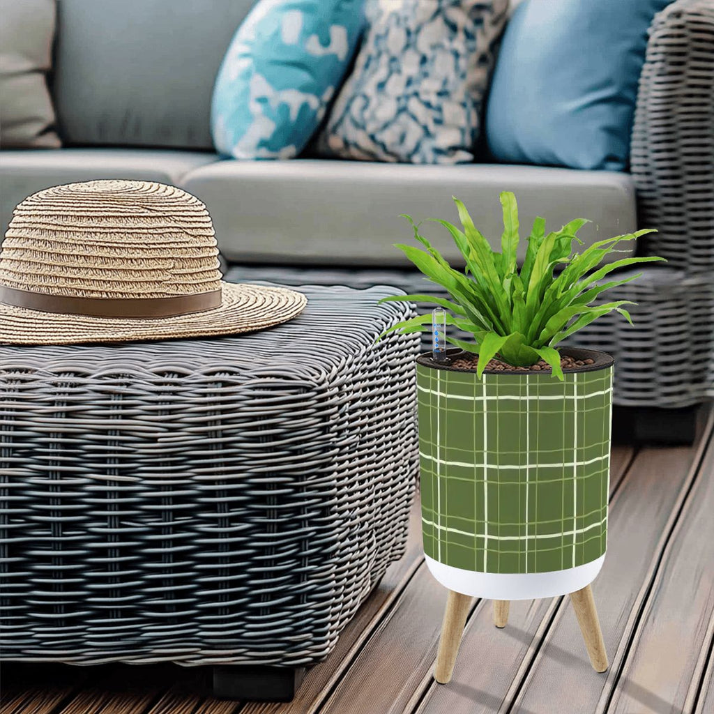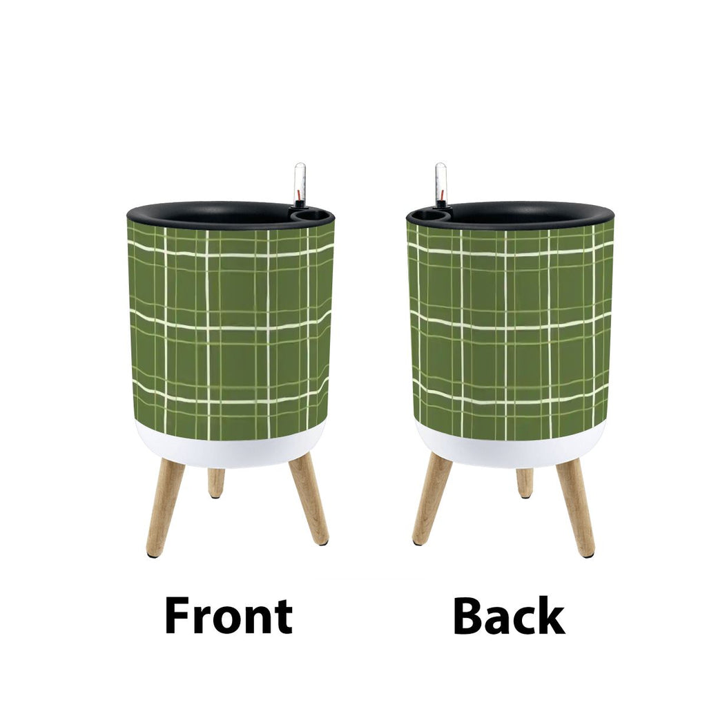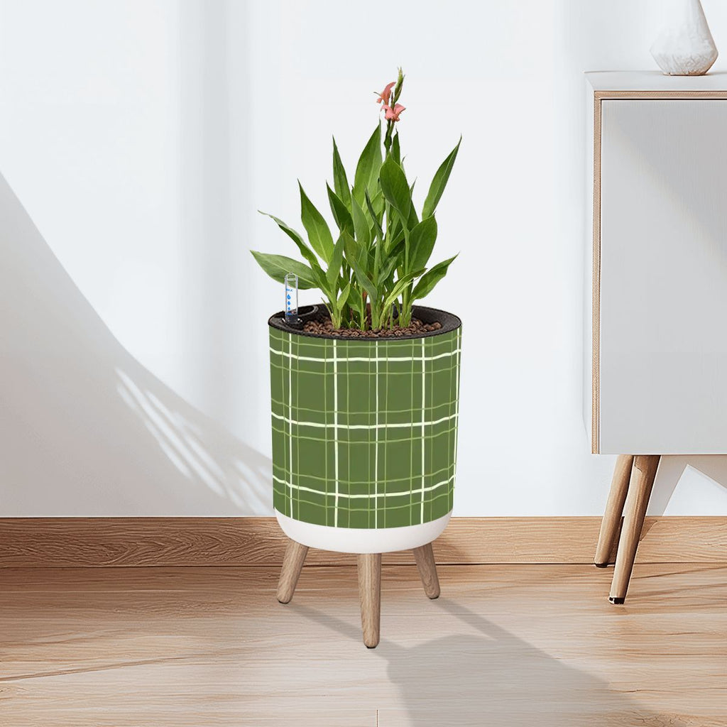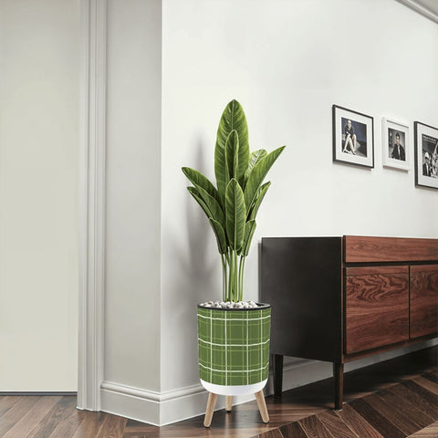 Retro Flower Pot - 70s Scandi Style Plant Pot with Wooden Legs Green Plaid