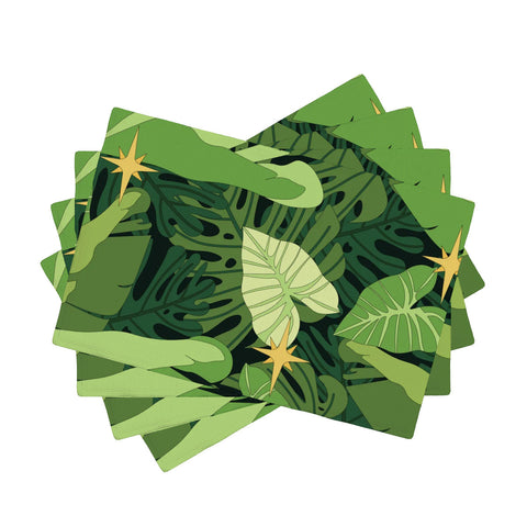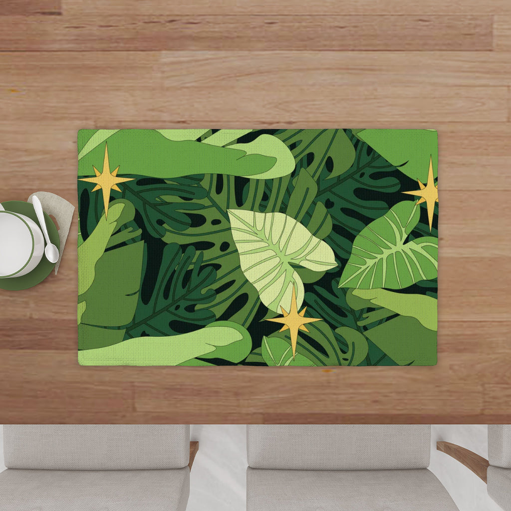 Retro Midcentury Double Layer Placemats – 60s Botanical Polka Dots Table Mats