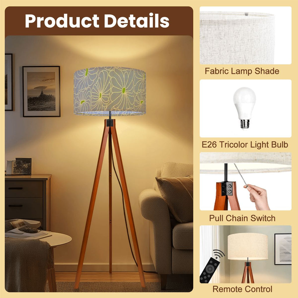 Bring light and style into your home with this tripod floor lamp. Its retro Scandinavian design combines a fabric lampshade with a sturdy wooden tripod base, creating a warm, unique and timeless accent for any interior.