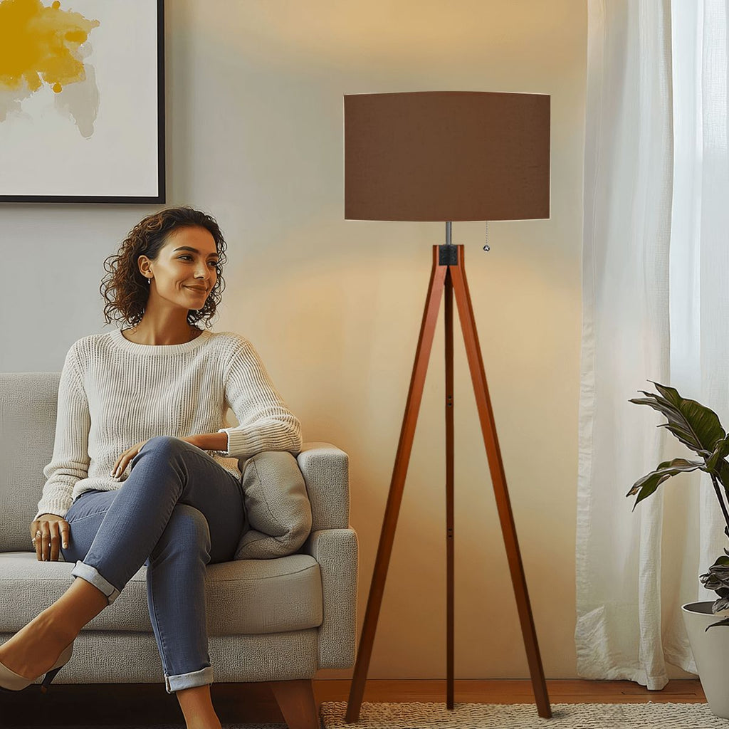 • Bring light and style into your home with this tripod floor lamp. Its retro Scandinavian design combines a fabric lampshade with a sturdy wooden tripod base, creating a warm, unique and timeless accent for any interior.
