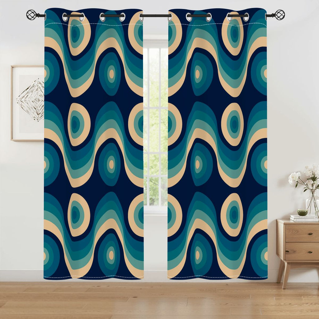 Blue Midcentury Modern Blackout Curtains: 70s Retro Multi Sizes Panels