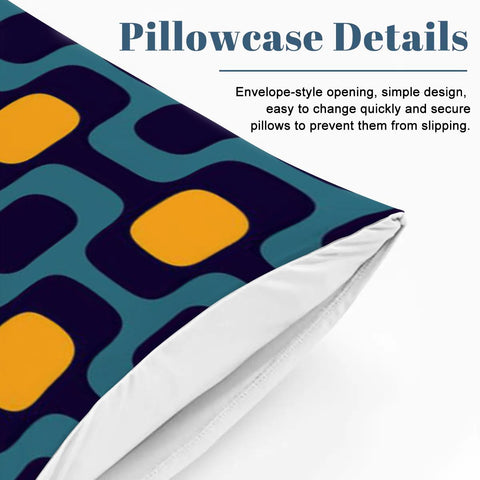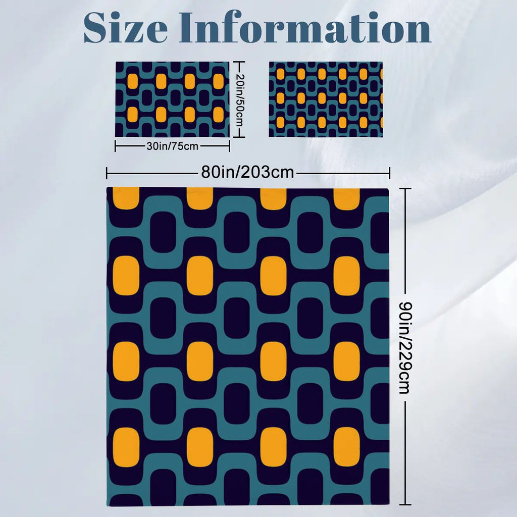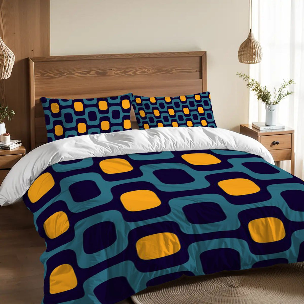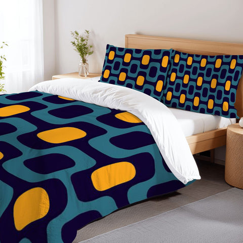 Blue Yellow Microfiber Comforter Set: Midcentury Retro Queen Size Bed