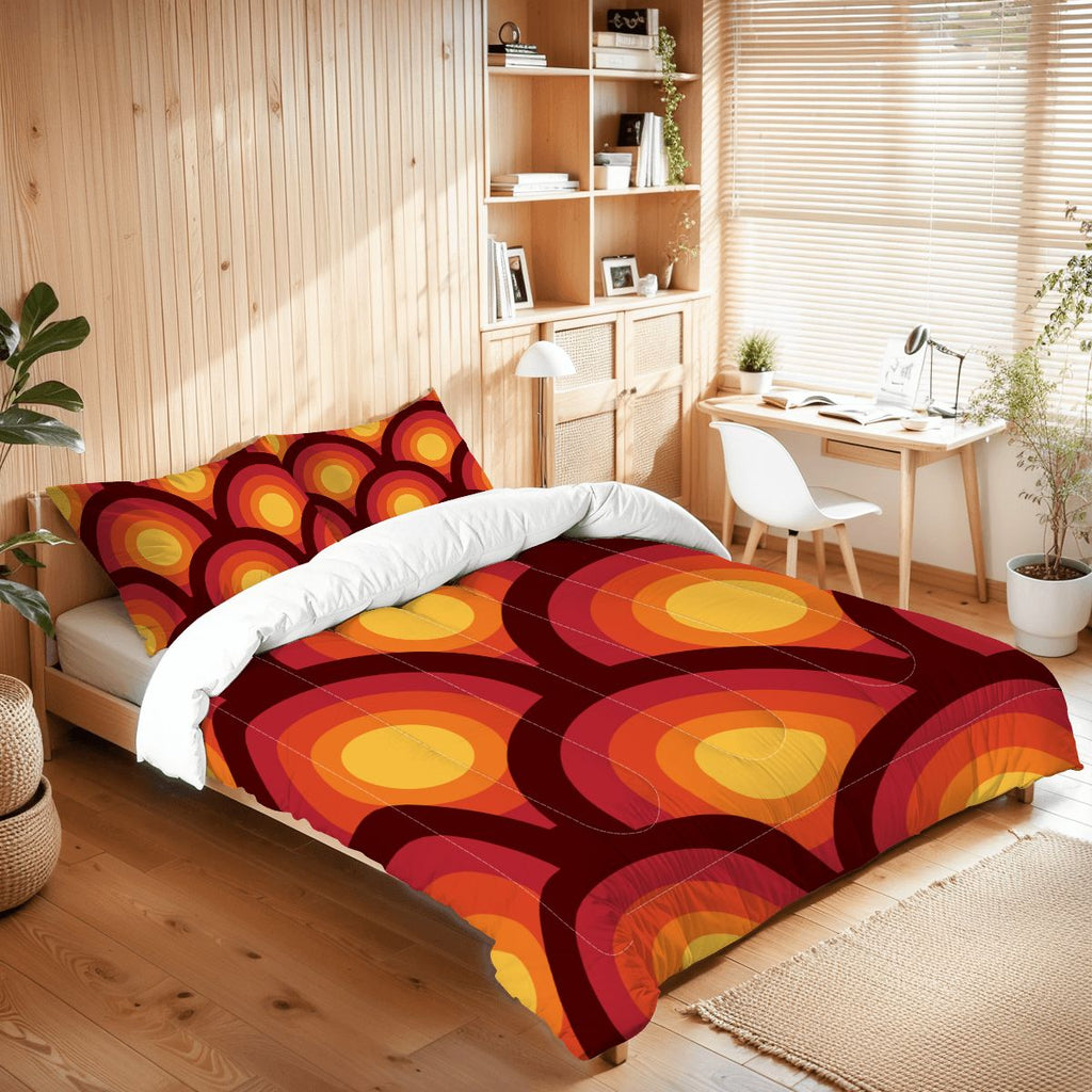 70s Retro Comforter Set: Queen Size Microfiber Bedding with Orange Circle Print