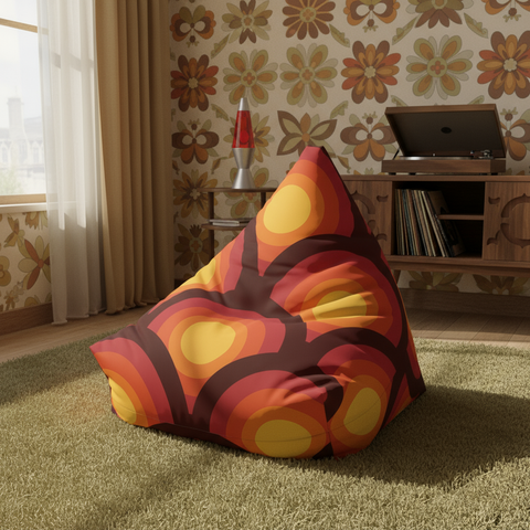 Groovy 70s retro style in vibrant yellow, orange, red, and brown - 3pc Reversible Luxury Microfiber Queen Size Bedding.