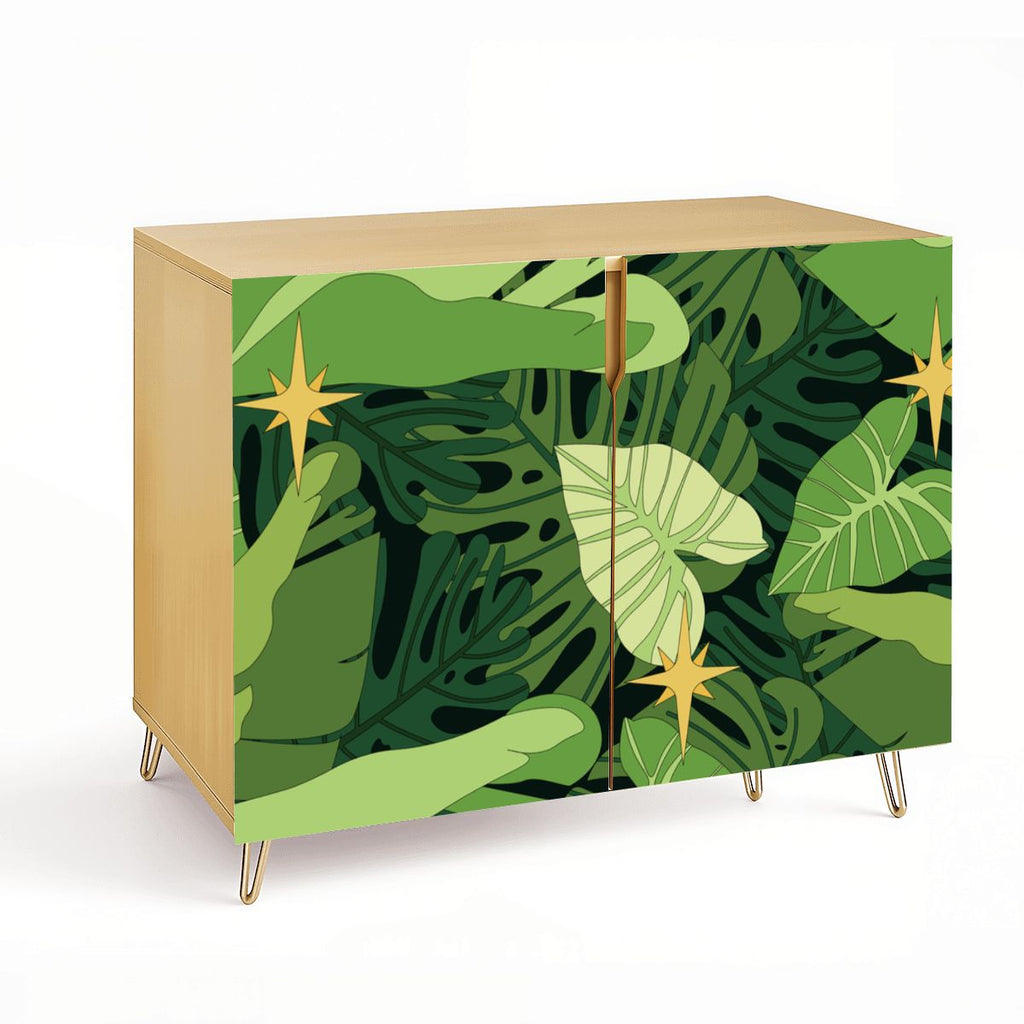 Mid Century Monstera Leaf Pattern Cabinet – Retro Storage with Hairpin Legs