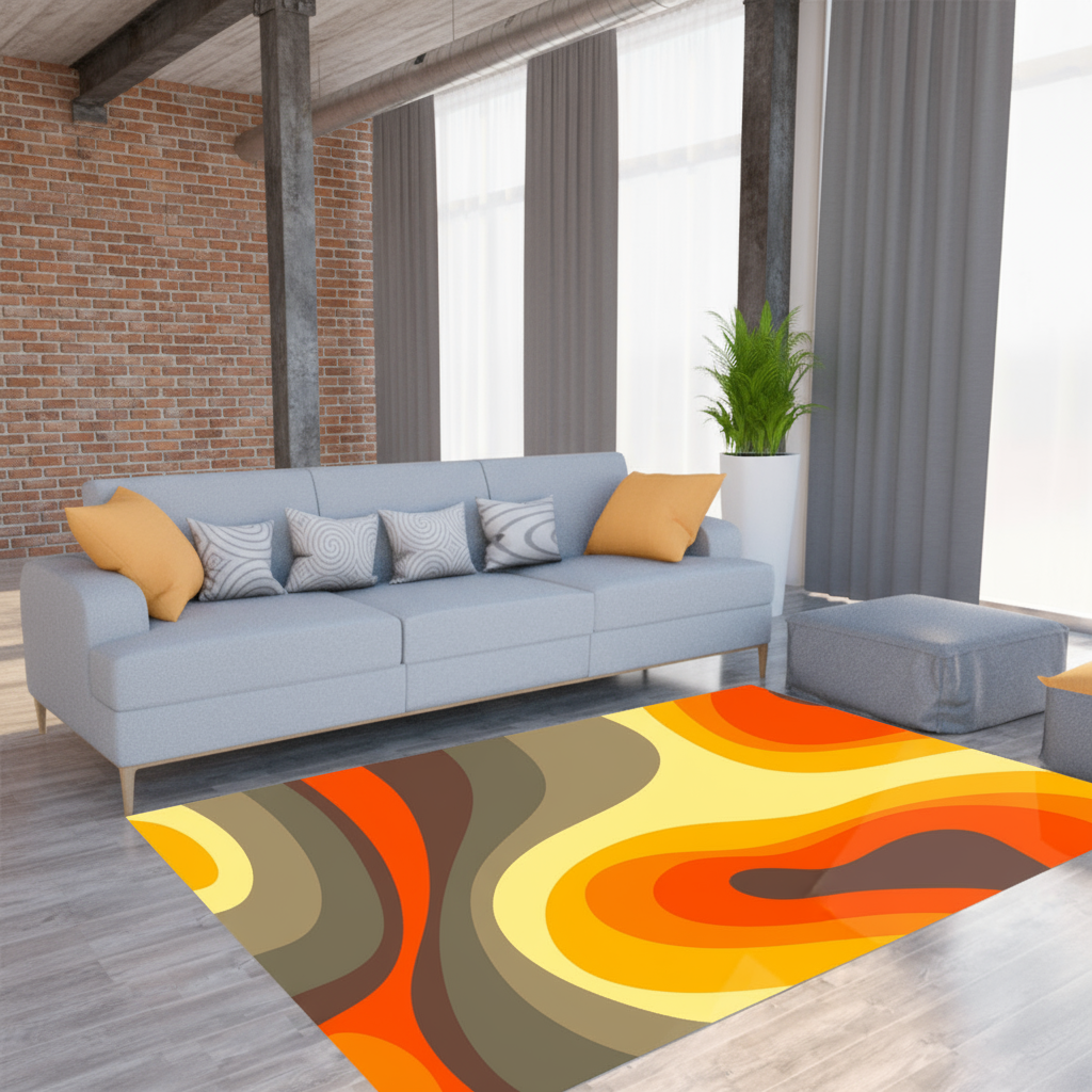 70s Retro Psychedelic Felt Floor Mat – Soft Non-Slip Midcentury Area Rug