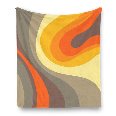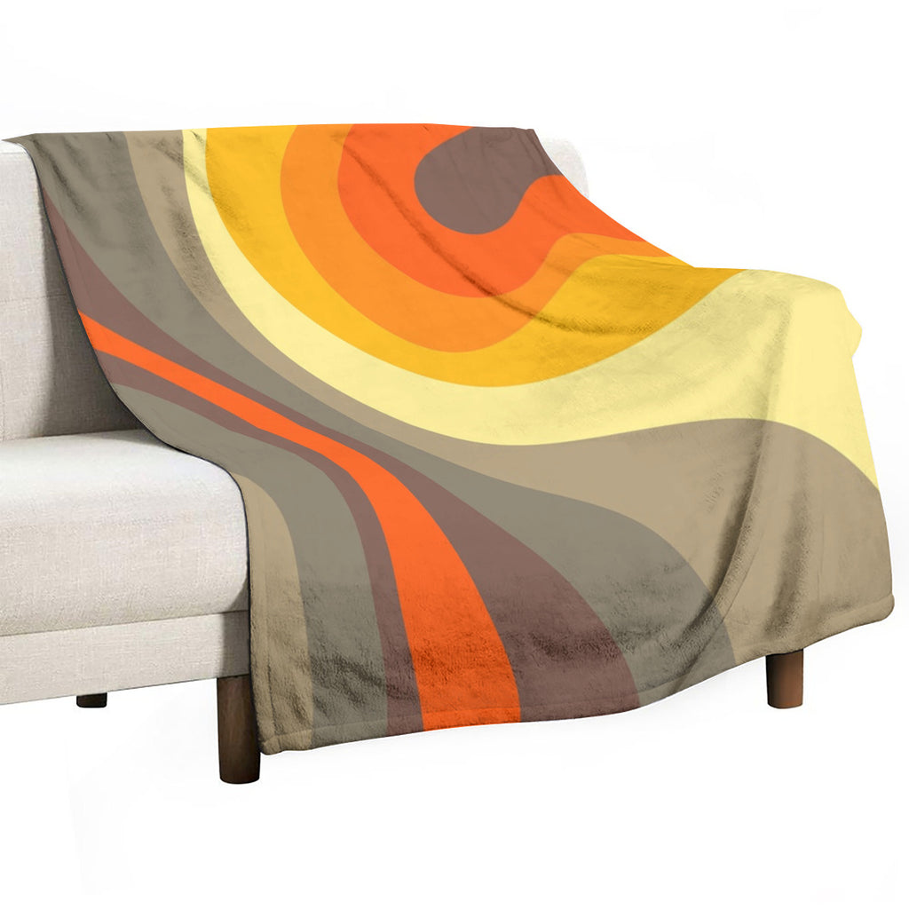 Midcentury Modern Fleece Orange Brown Blanket – Retro 70s Vintage Style