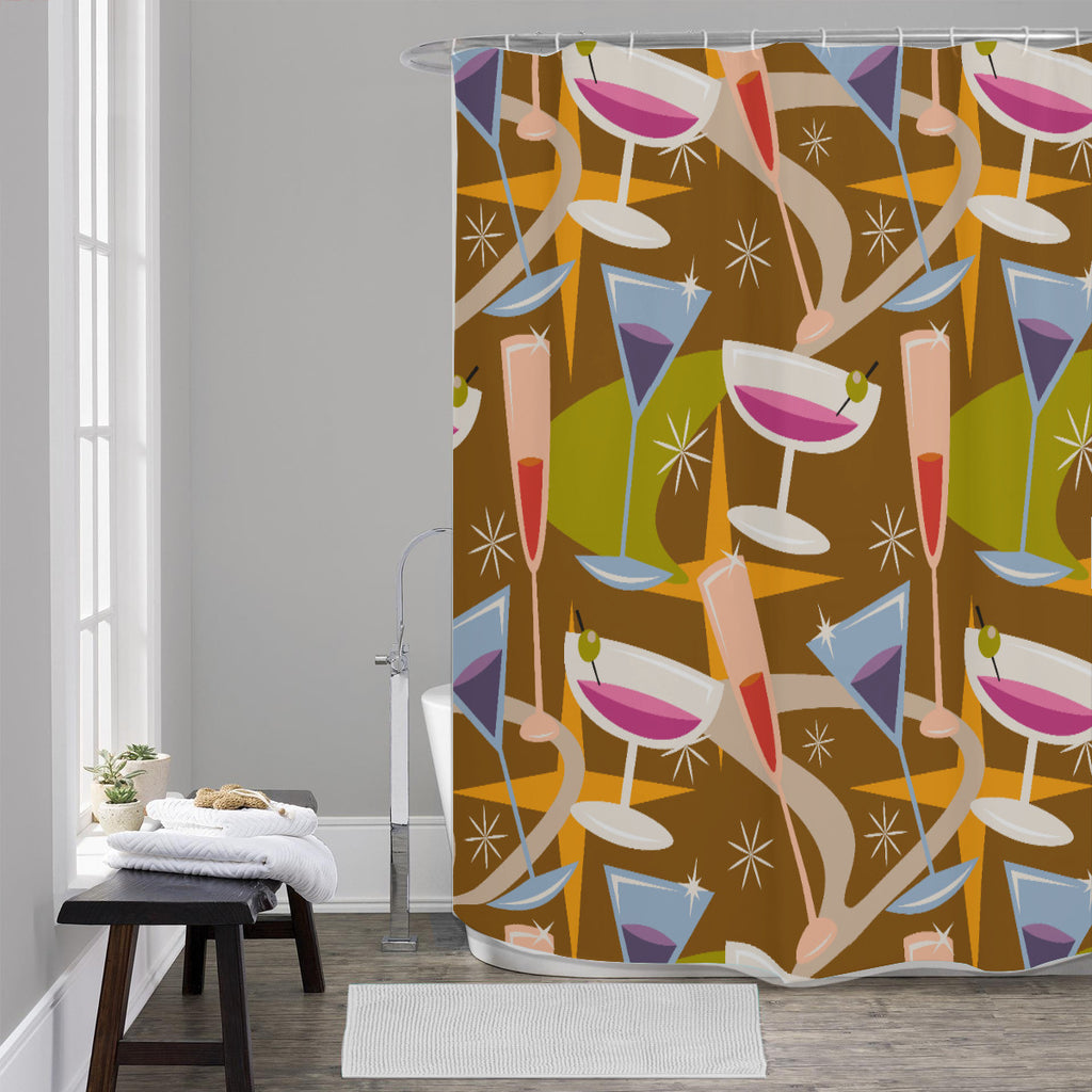 Midcentury Shower Curtain – Retro Bathroom Decor, Bold 60s Pattern