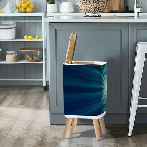 Scandi Retro Square Small Trash Can with Lid, Sunburst Blue