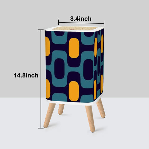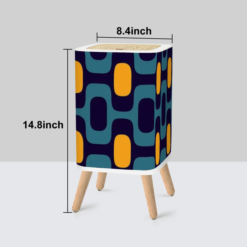 Scandi Square Small Trash Can with Lid, 1970s Blue Curry Yellow Geometric