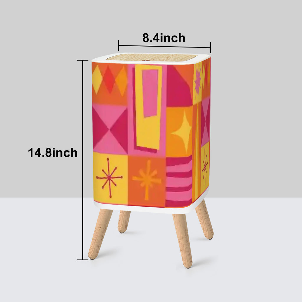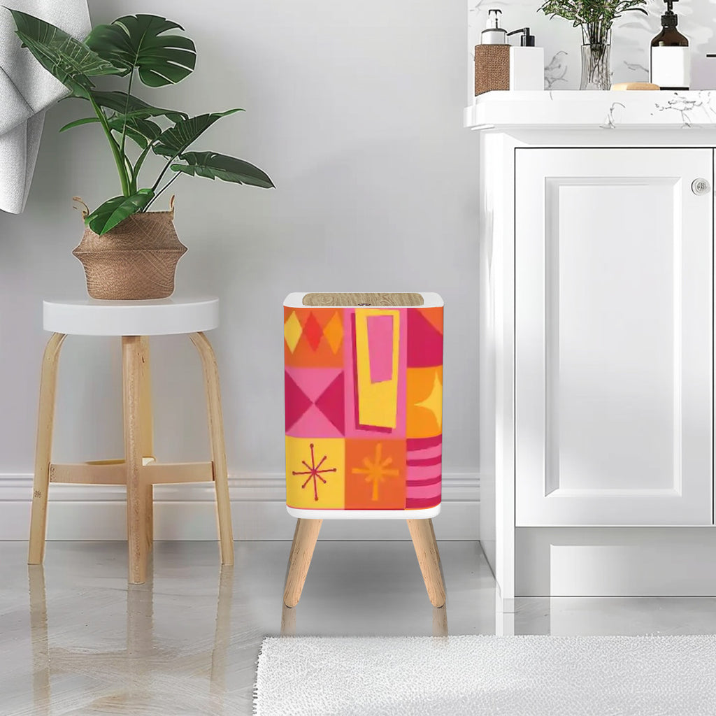 Square Small Trash Can with Lid Orange Pink Yellow Mid Century Pattern